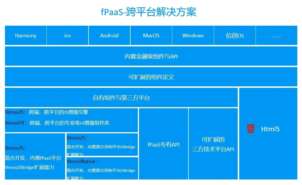 fPaaS平台是面向全领域渠道服务平台,支持包括HarmonyOS在内的iOS、Android、Windows、MacOS、UOS等操作系统之上的渠道应用构建,满足一站式跨平台的开发运行需求。平台在鸿蒙进化过程中加强了其技术包容性,通过JsLib扩展插槽机制实现跨技术平台适配,可对当前金融机构使用的三方渠道类技术平台对接,满足金融客户基于现有渠道应用技术平台快速构建鸿蒙App的要求。
